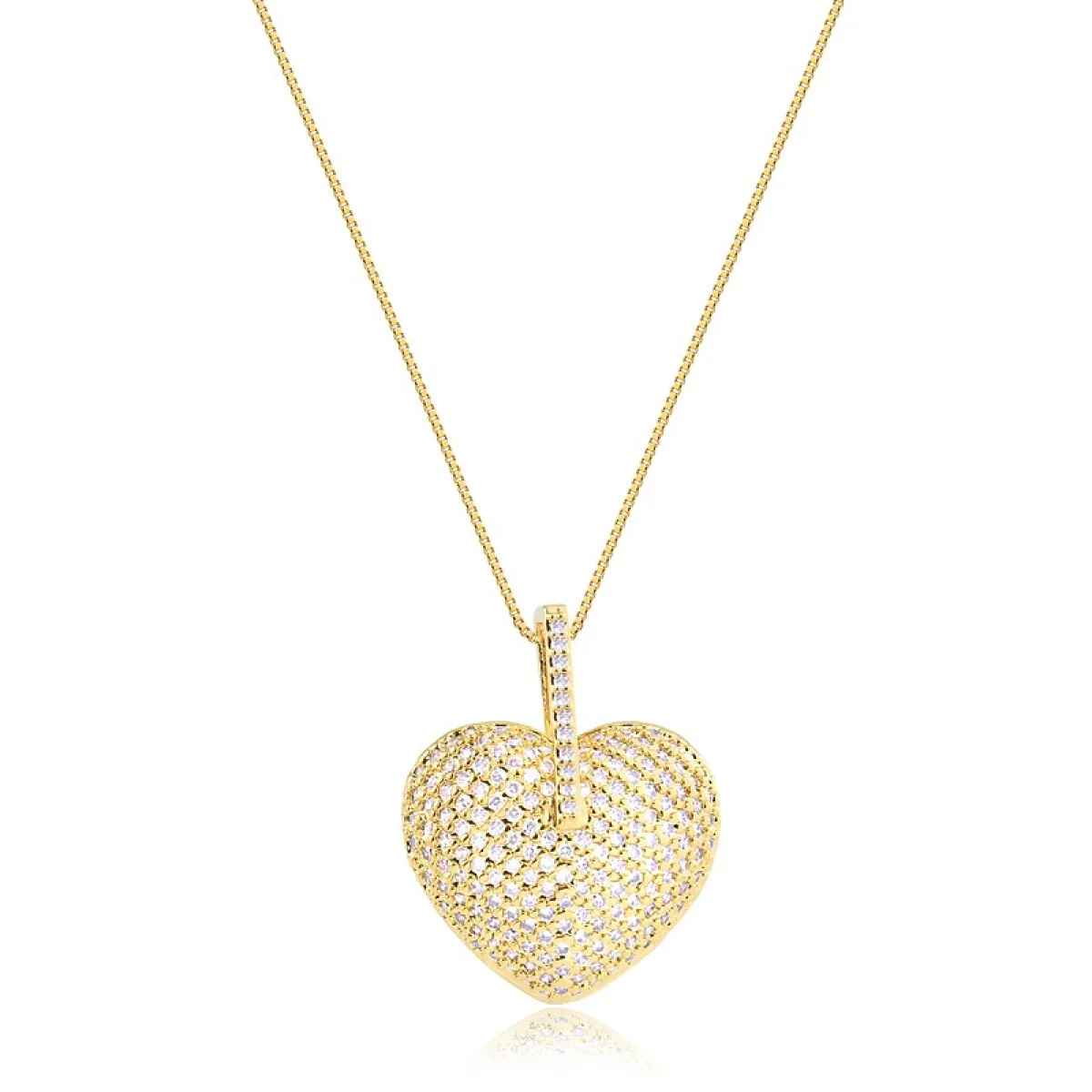 Colar com Pingente de Coração Maciço cravejado