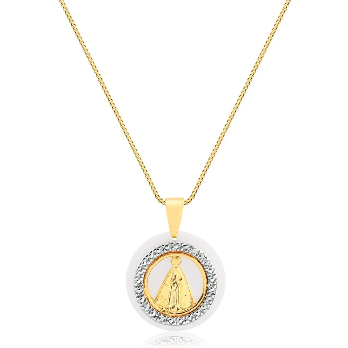 Colar com Pingente Madre Pérola sintético de Nossa Senhora médio.