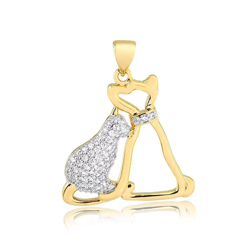Colar com Pingente Pet de Cachorro e Gato c/ detalhes cravejados em micro zircônia e aplicação de ródio.