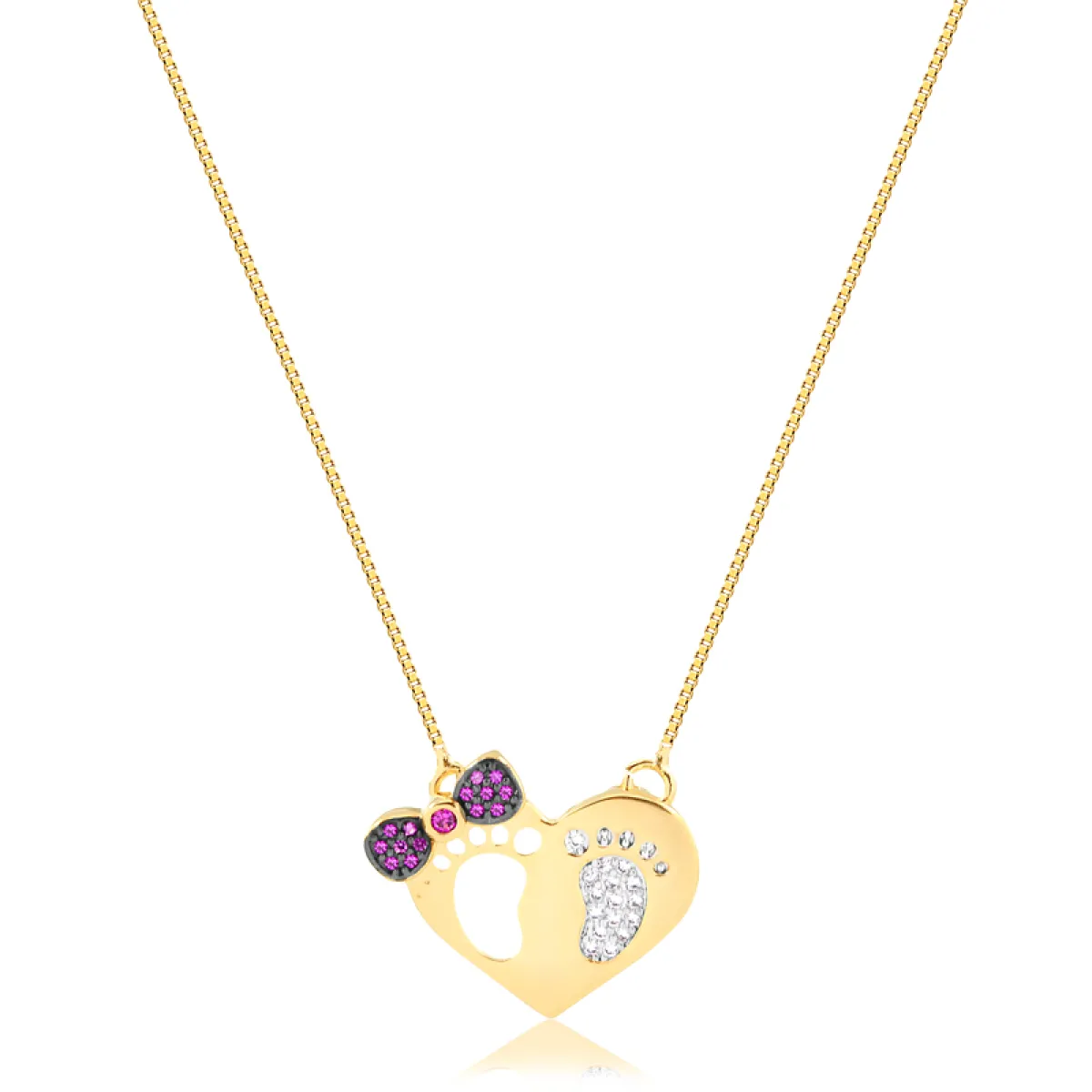 Notice: Undefined index: ip_info no arquivo /home/meuportajoiascombr/domains/meuportajoias.com.br/public_html/catalog/model/tool/product_viewed.php na linha 92Notice: Undefined index: ip_info no arquivo /home/meuportajoiascombr/domains/meuportajoias.com.br/public_html/catalog/model/tool/online.php na linha 271Colar Coração com Pés e Laço - Menina