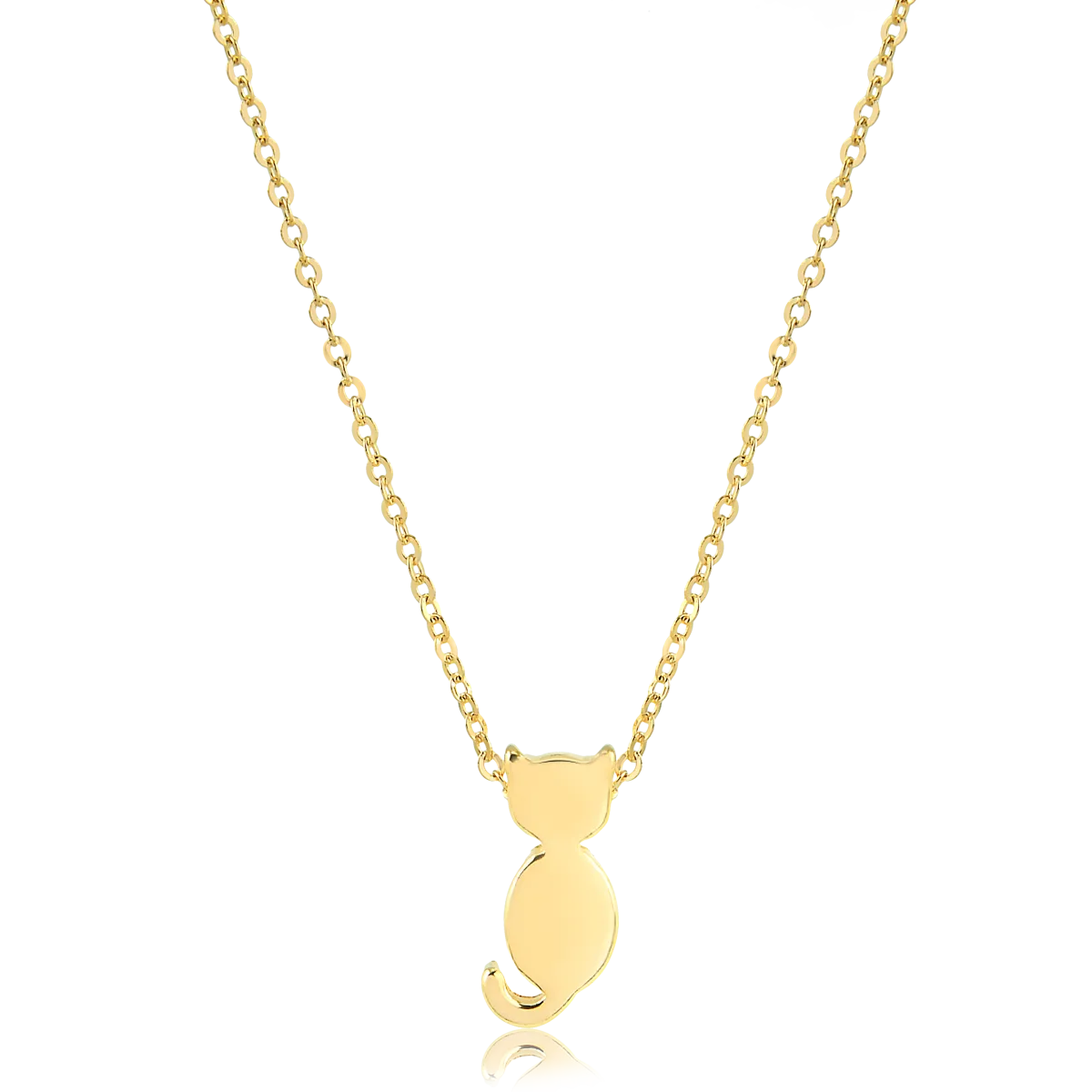 Colar em malha de corrente mini cartier com pingente de gato maciço.