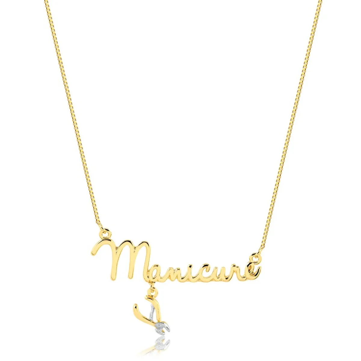 Colar de profissão com escrita Manicure e pendente de alicate.