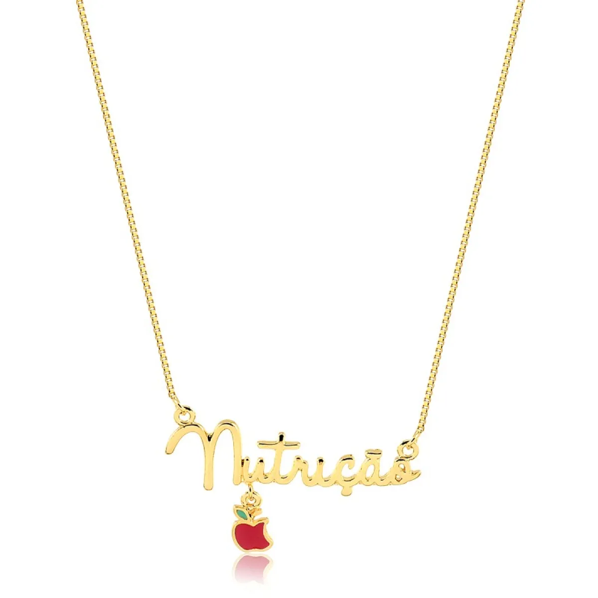 Colar de profissão com escrita Nutrição com pendente de maçã e detalhes em resina.